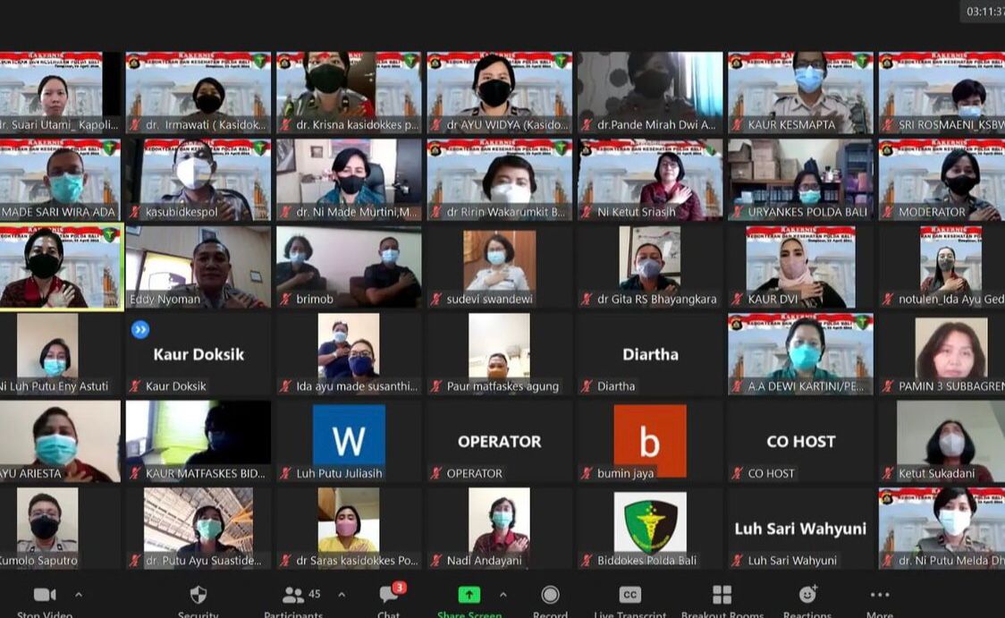 RS Bhayangkara Bhayangkara Denpasar mengikuti Rapat Kerja Teknis ( Rakernis ) Biddokes Polda Bali Tahun 2022 melalui Zoom Meeting . Selasa 12/04/2022.