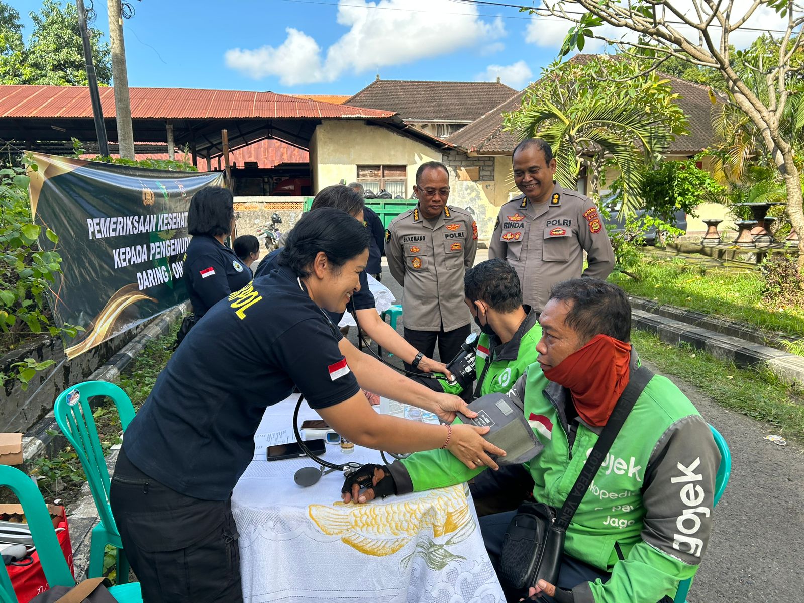 Dalam rangka memperingati Hari Bhayangkara ke-79, Rumah Sakit Bhayangkara Denpasar melaksanakan kegiatan pemeriksaan kesehatan gratis bagi para pengemudi ojek online yang dilaksanakan di Asrama Polisi Kreneng, Denpasar. Rabu(11/6/2025)